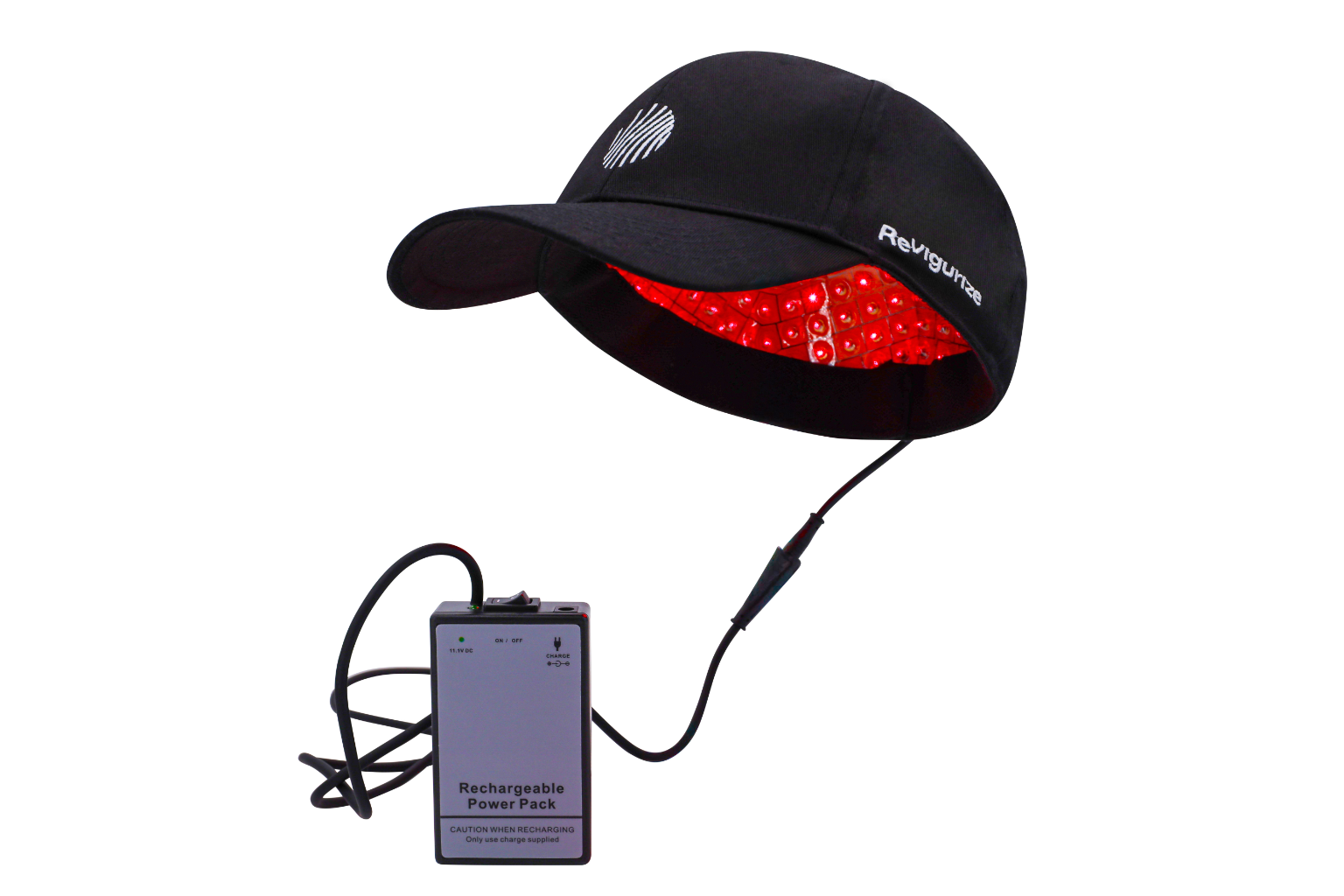 Wat zit er in de doos? Je ontvangt een compleet systeem: de Revigurize Active Hair Cap (discreet zwart design), de laser-module met 272 diodes, een flexibele powerbank met oplader, een luxe travel case en een duidelijke handleiding.